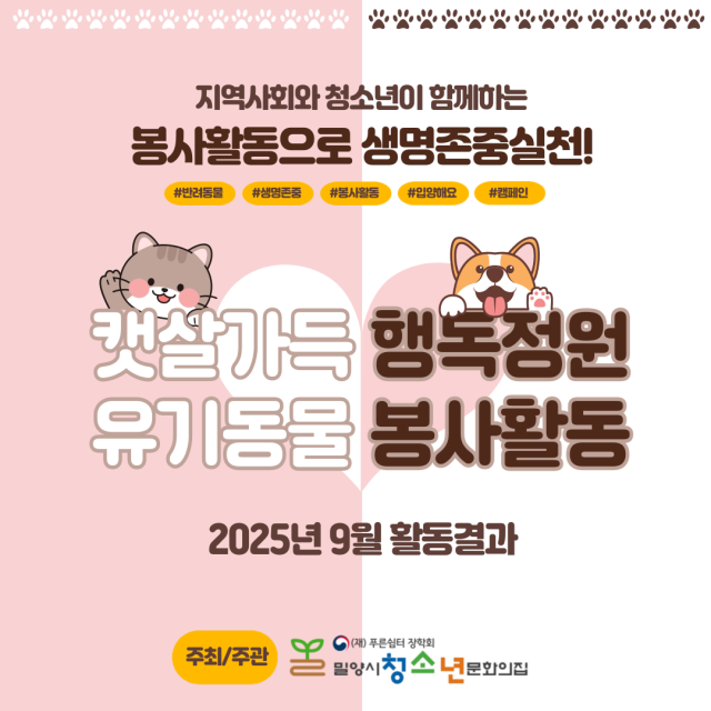 9월 캣살가득 행독정원 봉사활동 및 참가청소년 모집